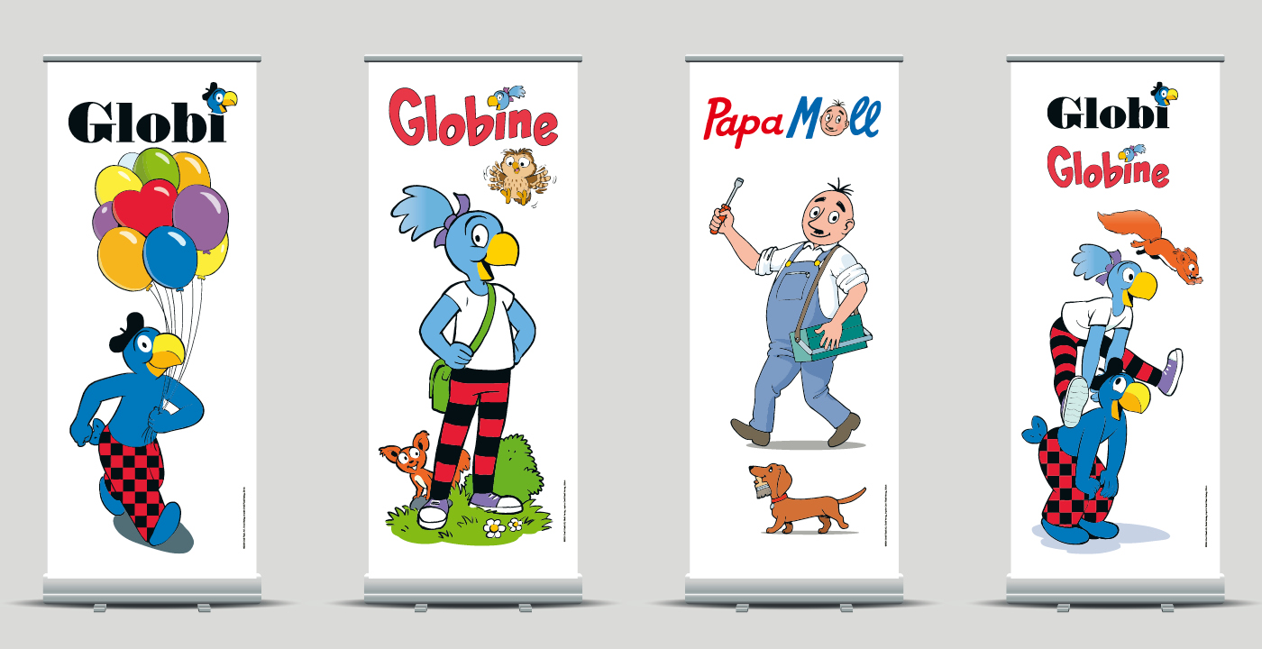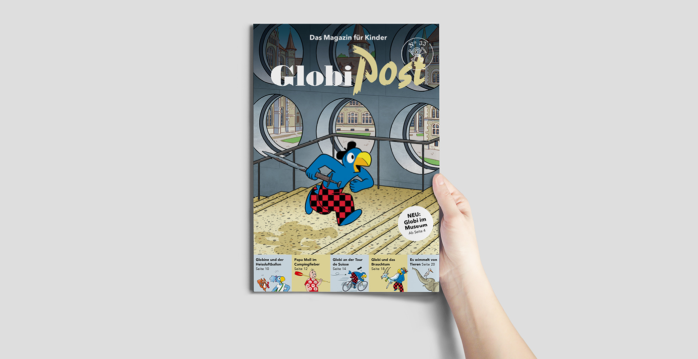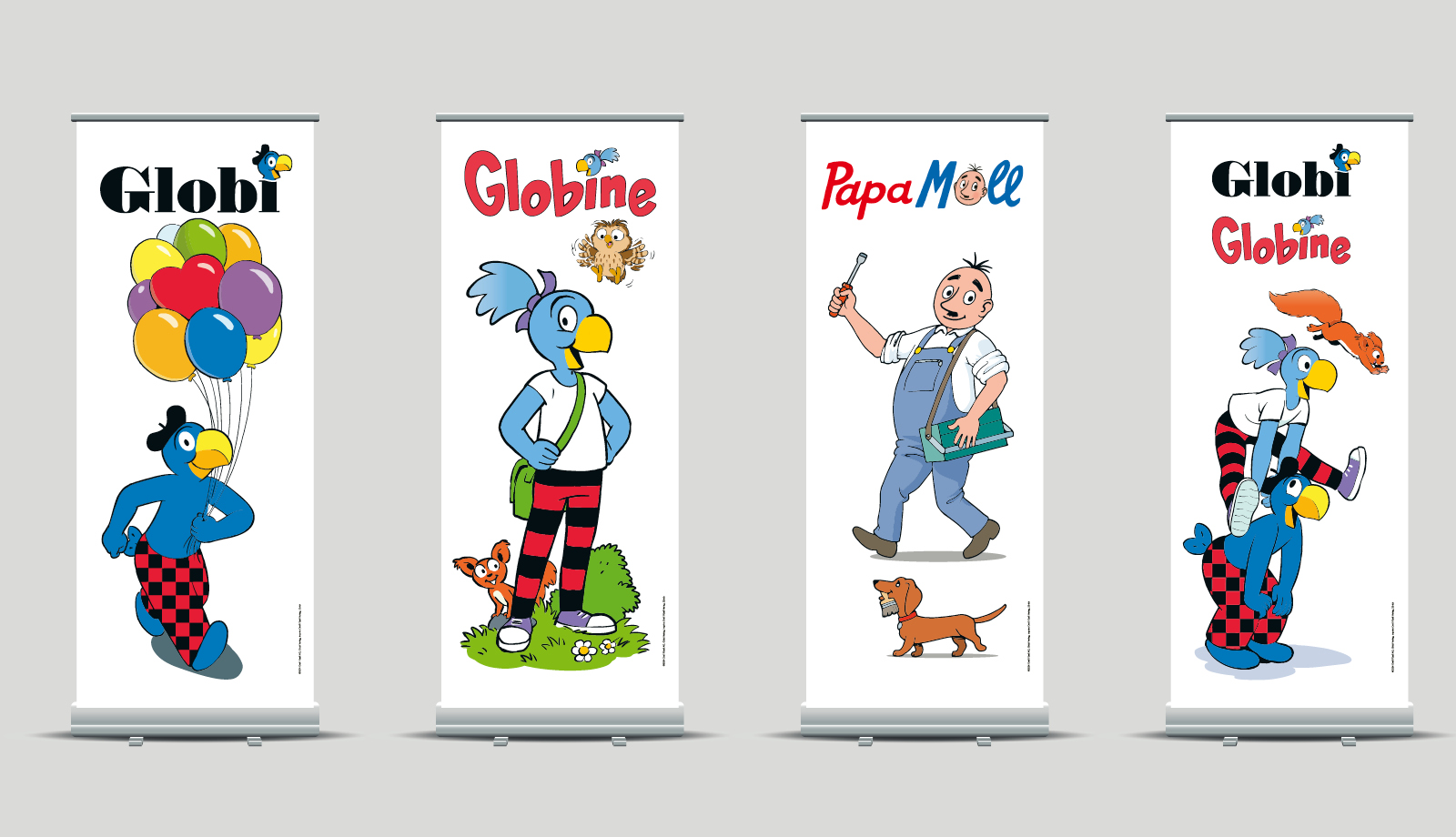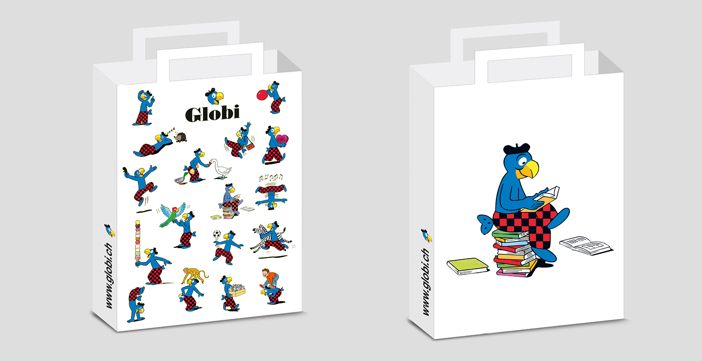 dem Globi Verlag. Werbeplakate, Sticker und Postkarten werden bei Neuproduktionen