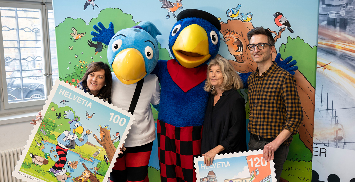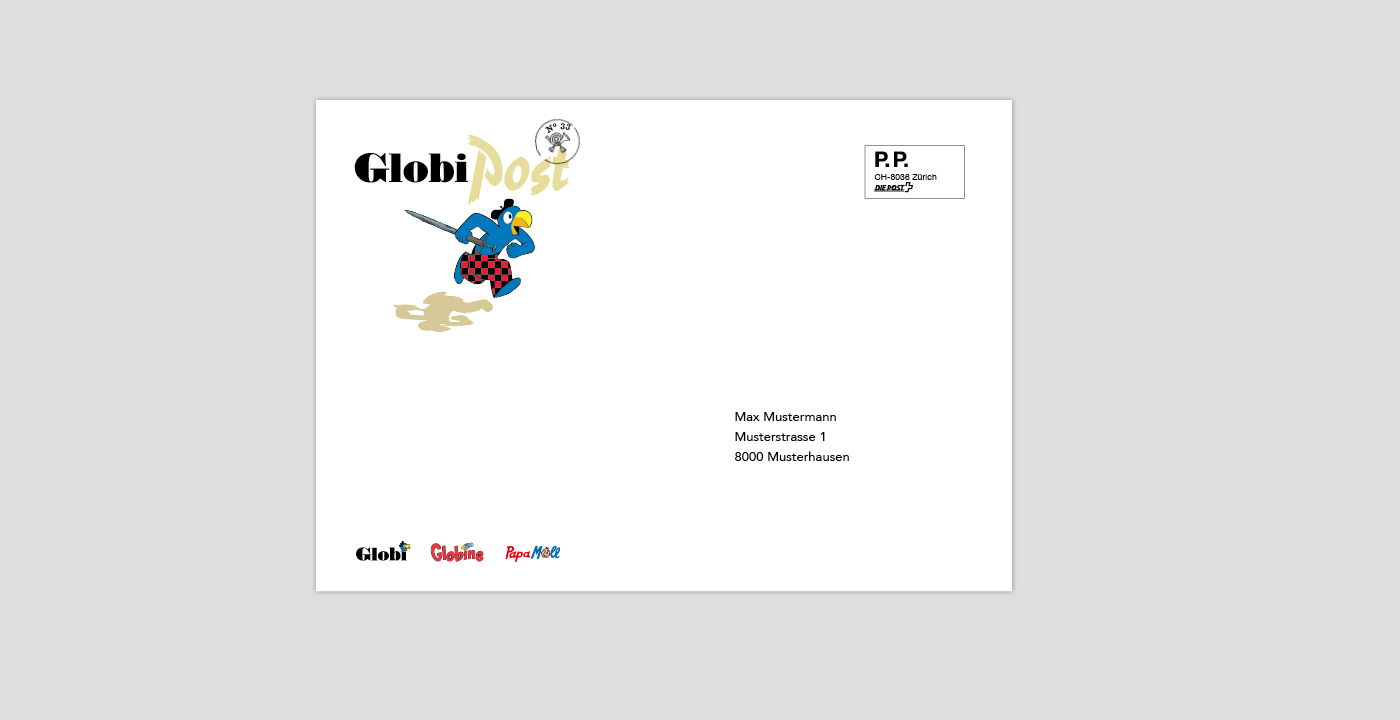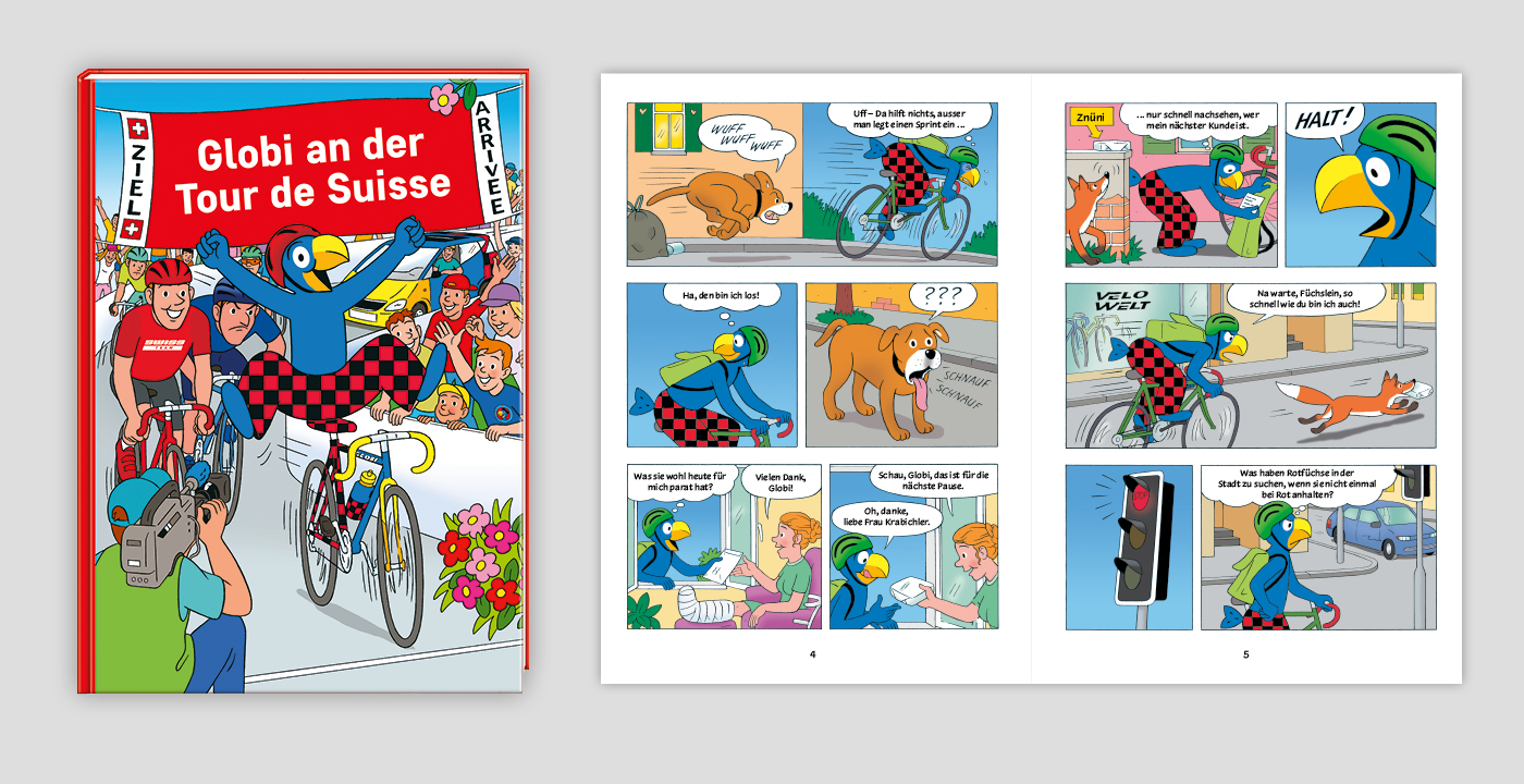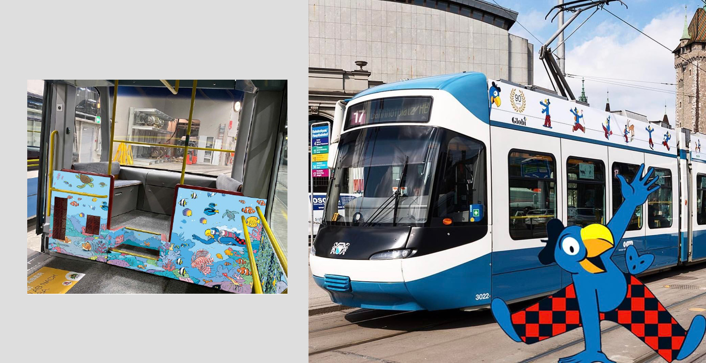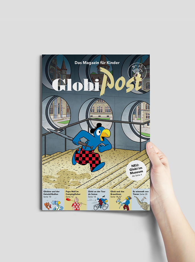 dem Globi Verlag. Werbeplakate, Sticker und Postkarten werden bei Neuproduktionen