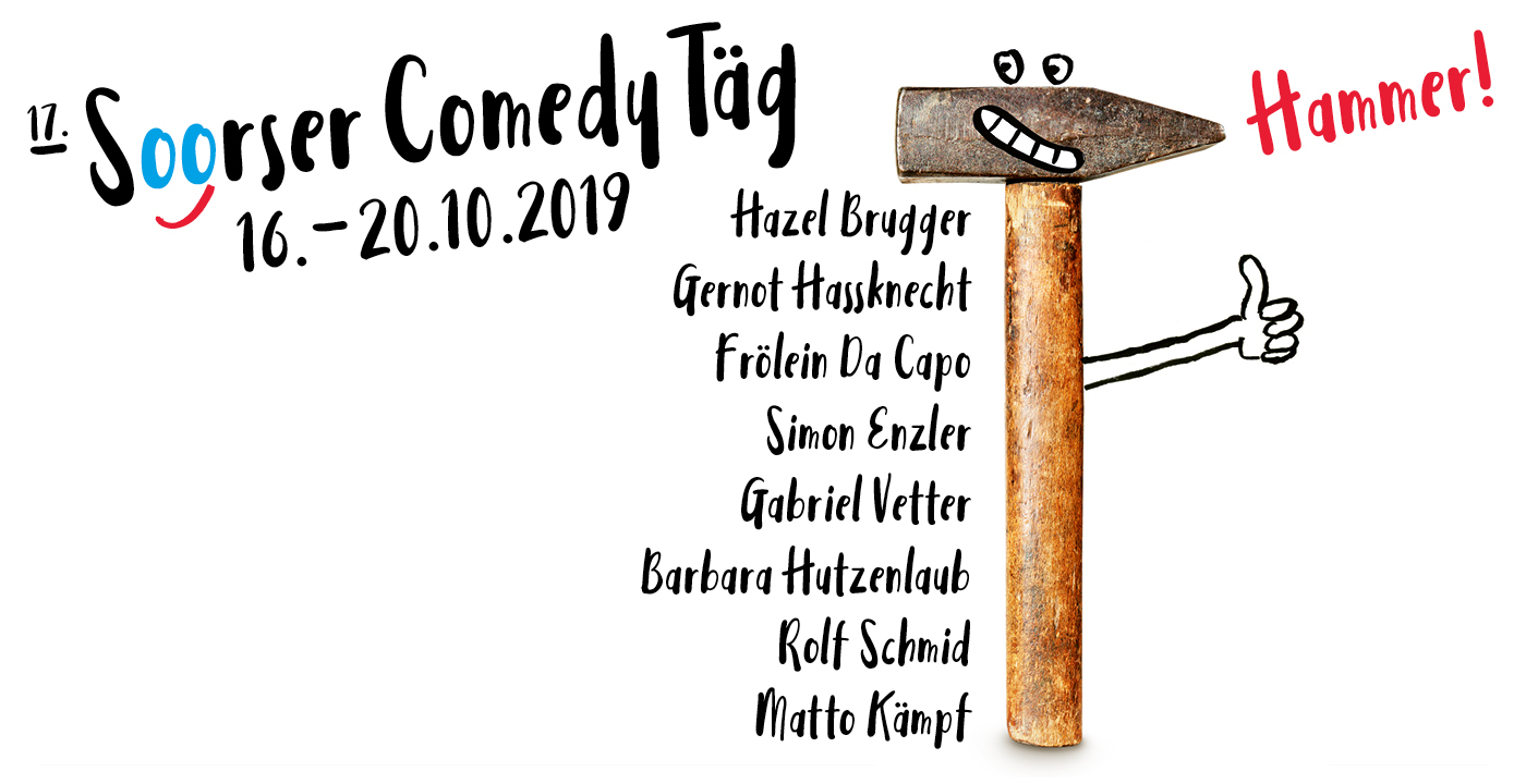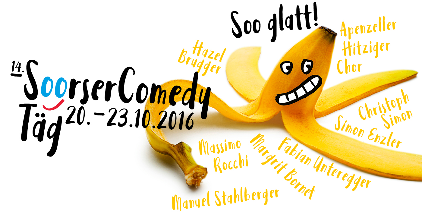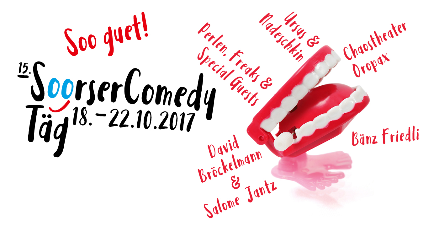 Die Soorser Comedy Täg durfte ich ab deren zweiten Jahr bis zur Auflösung im Jahr 2023 den jährlichen grafischen Auftritt ausarbeiten. Eine sehr reizvolle Aufgabe, die mir jeweils am Anfang des Jahres viel Spass und Freude bereitete. Auch hier konnte ich gestalterisch aus dem Vollen schöpfen und bildgewaltige und Aufmerksamkeit erzeugende Visuals für Plakate, Flyer und Inserate erzeugen, zu denen ich mir auch passende Slogans ausdachte. Vorhang auf für reizvolle Täg!