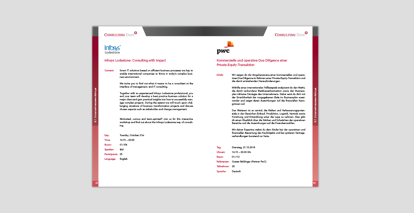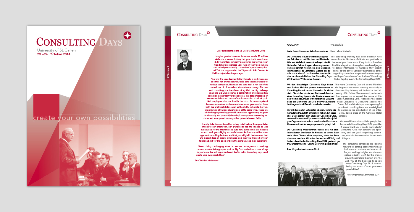 2013 bis 2019 die Printprodukte für die Consultings Days, die jeweils im Oktober